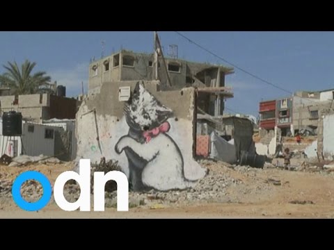 Banksy paints graffiti on remains of Gaza home