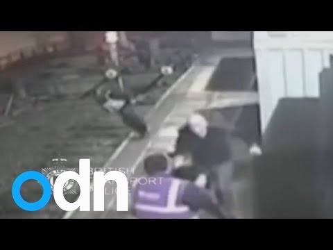 SHOCKING CCTV: Footage shows man pushing police officer onto train tracks